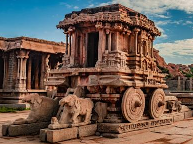 The Stone Chariot in the Vijayanagara Empire at Hampi is considered one of the most important structures. Here most people are unaware, that this region was the residence of a developing carriage market, where chariots, horses, and even elephants for the royal families were bought and sold. Supposedly the sophistication of these implements mirrored the wealth of the kingdom.